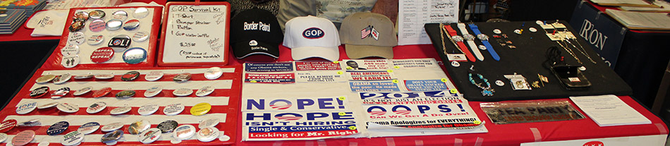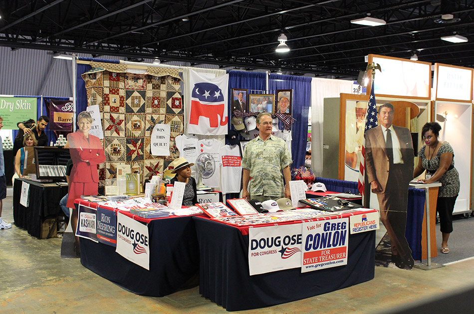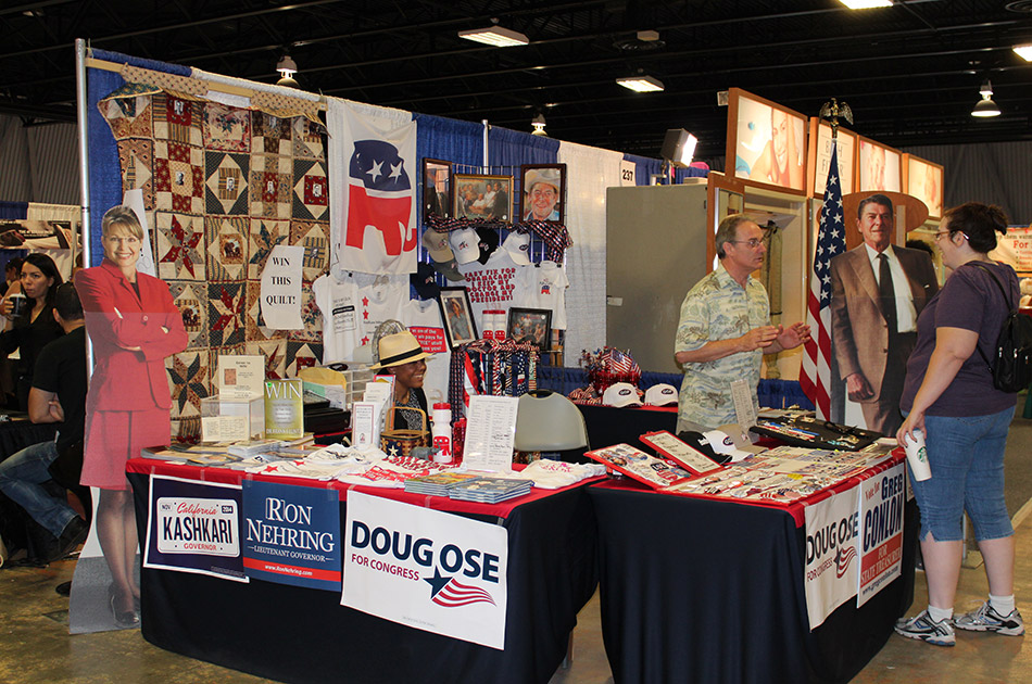 quilt, and signs for several candidates. The booth offered an