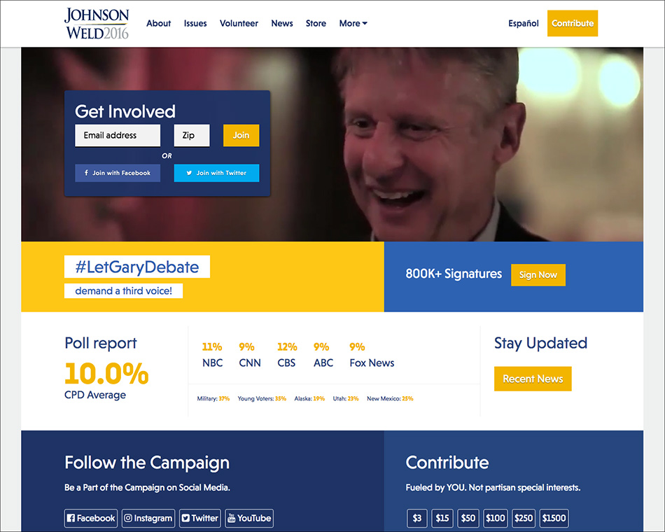 Bill Weld and I will continue to fight to provide a voice and an alternative for independents, disenfranchised Republicans and Democrats, Millennials and others who aren’t satisfied with Donald Trump and Hillary Clinton as their options.