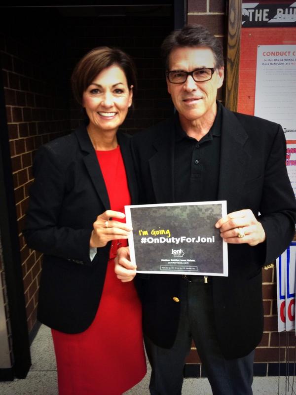 July 19, 2014 - With Gov. Rick Perry at the North Iowa Conservative Event (NICE) dinner/fundraiser at Algona High School Commons in Algona. |