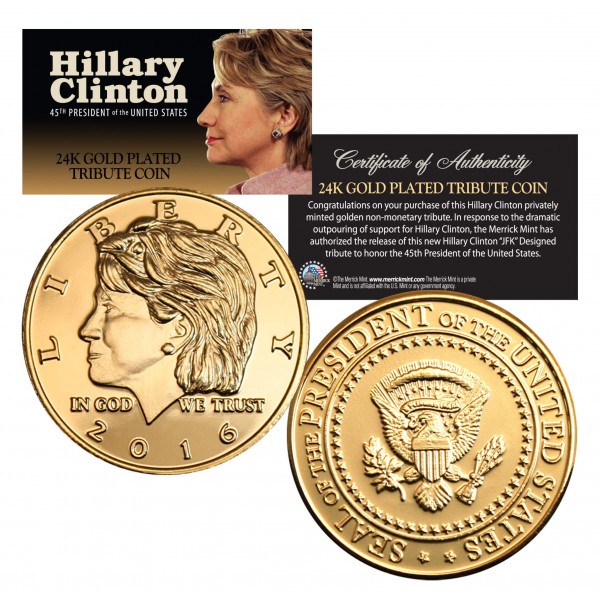 • 2016 Hillary Clinton Tribute coin.• Each Coin is Lavished in Precious Genuine 24 Karat Gold.