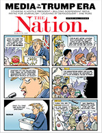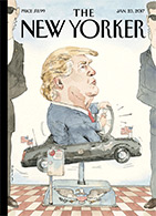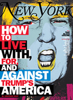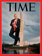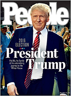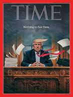 This page has covers through April 2017 (Trump's 100th day was April 29). The covers above are organized in rough chronological order. Issue dates on the covers of magazines correlate only loosely with the dates magazines actually appear; there is a lot of variation.