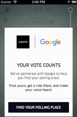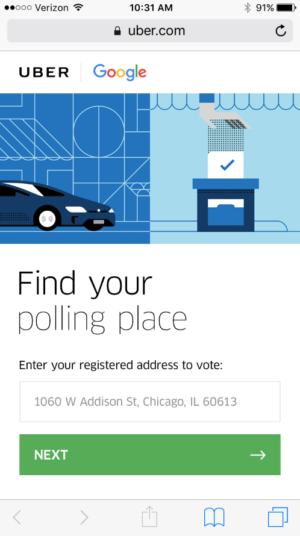 So plan ahead, let Uber and Google get you to your polling place, and, most importantly, get out to vote on November 8.