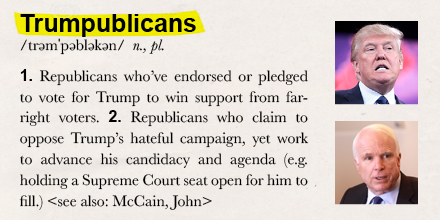 “Republicans can’t have it both ways. We know that anyone who stands with Donald Trump stands against us. We’ve launched our Trumpublicans / Trumpublicanos campaign to hold Donald Trump and the Republicans responsible for demonizing our communities and standing against our priorities. They’ve failed us at every level, and that's why we'll cast the deciding votes against them this November."
