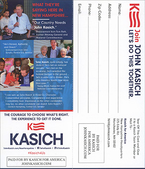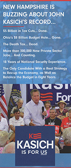NEW HAMPSHIRE IS BUZZING ABOUT JOHN KASICH'S RECORD...$5 Billion in Tax Cuts... Done.Ohio's $8 Billion Budget Hole... Gone. The Death Tax... Dead. More than 300,000 New Private Sector Jobs... And Counting. 18 Years of National Security Experience. The Only Candidate With a Real Strategy to Rev-up the Economy, as Well as Balance the Budget in Eight Years. WHAT THEY'RE SAYING HERE IN NEW HAMPSHIRE"Our Country Needs John Kasich."- Endorsement from Tom Rath, Former Attorney General and National Committeeman "He's Honest, Authentic and Direct." - Endorsement from John Sununu, Former U.S. Senator "John Kasich, quite simply, has done it. He's led on national security... he's led on the economy...he's wrestled the federal budget to the ground ... he's a uniter not a divider...He's who America needs now more than ever." - Nancy Merrill, Former NH GOP National Committeeman "I can sum up John Kasicn in three Cs. Character. Conservative principles. Competence and experience I completely trust. Impressive as the other candidates may be, no other candidate can match John Kasich." - Gordon Humphrey, Former U.S. Senator THE COURAGE TO CHOOSE WHAT'S RIGHT. THE EXPERIENCE TO GET IT DONE. JohnKasich.com/NewHampshire JohnKasich @JohnKasich #Kasich4US New Hampshire and JOHN KASICH Together We'll Get America Back on Track |