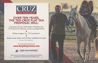 OVER TEN YEARS, THE TED CRUZ FLAT TAX PROPOSAL WILL:Increase Gross Domestic Product by 13.9 percent above current projections.Raise wages by 12.2 percent. Add more than 4.8 million additional jobs Source: Tax Foundation For more information visit www.keepthepromise.com Paid for by Keep The Promise PAC. Not authorized by any candidate or candidate's committee. www.keepthepromise.com |