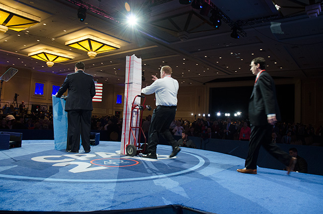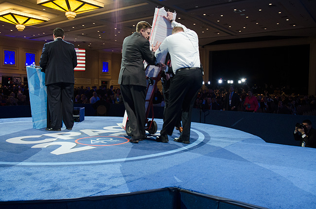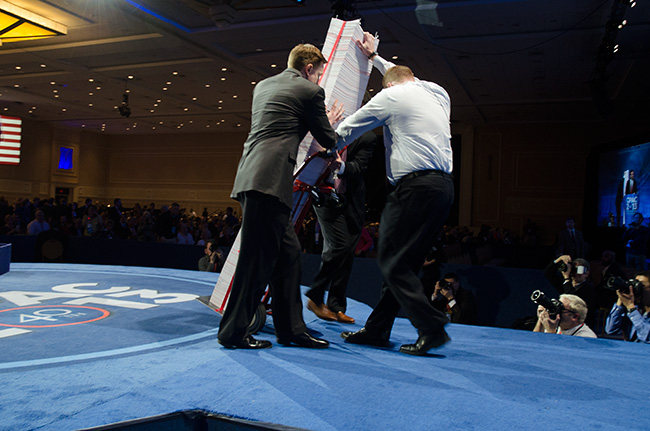 McConnell's remarks, the stack is carted off stage. |