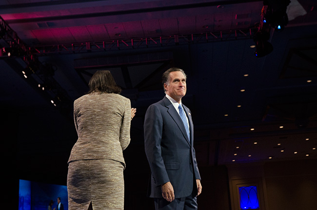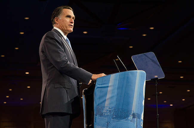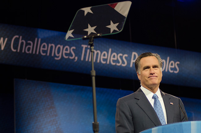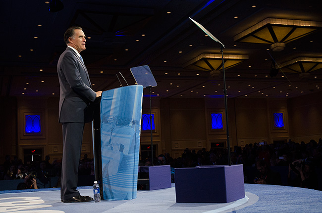 Massachusetts Gov. Mitt Romney offered an upbeat but bland speech [transcript], eschewing analysis