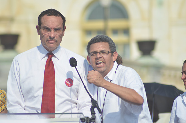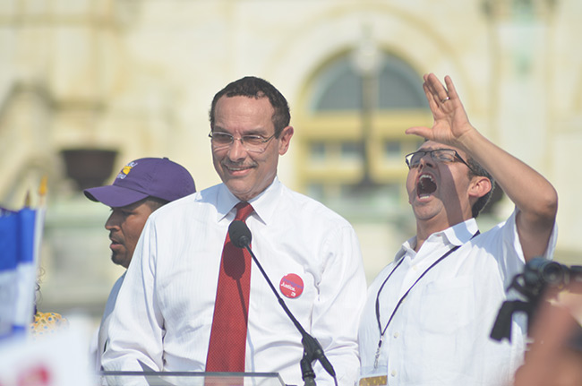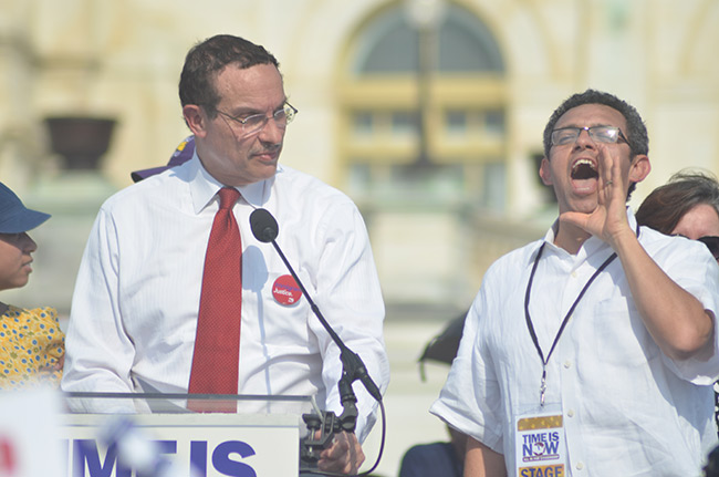 April 10, 2013--Gustavo Torres, executive director of CASA de Maryland, introduces DC Mayor Vincent Gray at the rally for immigration reform.