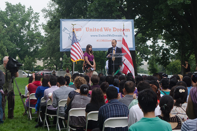 July 10, 2013--United We Dream, which describes itself as "the largest immigrant youth-led organization in the nation" organized an aspirational citizenship ceremony in Upper Senate Park to push for immigration reform. Rep. Luis Guitiérrez (D-IL) addressed the group. |