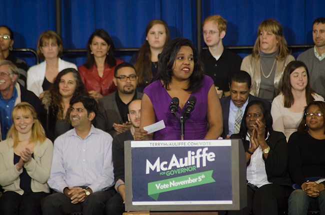Democratic candidate for Attorney General. [Former Republican and Independent Delegate Katherine Waddell spoke after Herring]. |