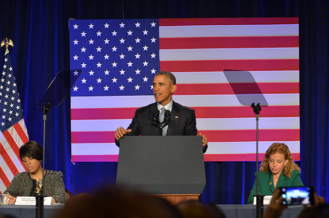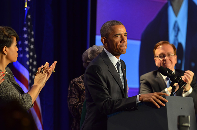 "a breakthrough year for America." To applause Obama stated, "It’s not an accident that