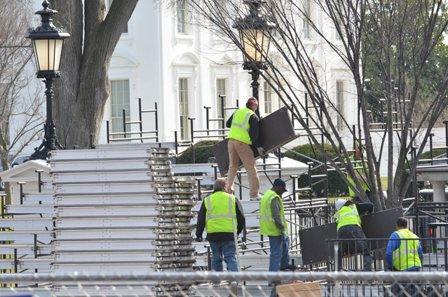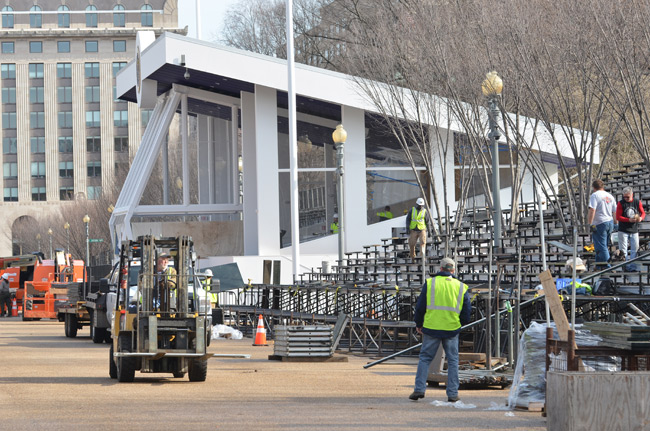 Jan. 12, 2017--More work on the Inaugural Parade viewing stand and bleachers.