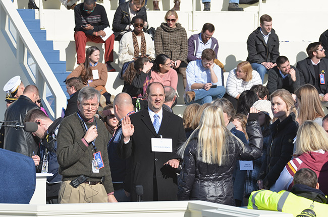 Ewachiw, standing in for Vice President Pence, takes the oath.