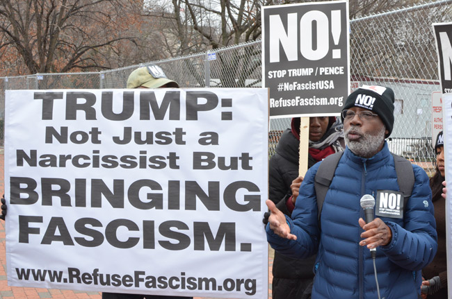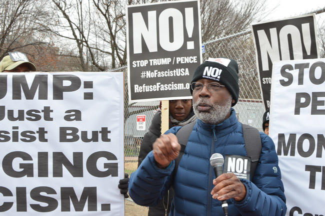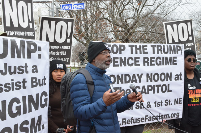 Jan. 22, 2017--Carl Dix, a leader of Refuse Fascism who describes himself as a revolutionary communist, holds a press conference in Lafayette Park.