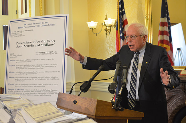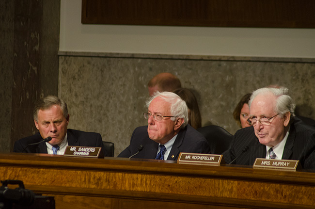For the 114th Congress, Sen. Bernie Sanders is ranking member of the Senate Budget Committee, putting him in position to be a central figure in budget negotiations. Sanders has been outspoken against the Trans-Pacific Partnership Free Trade Agreement (TPP), arguing that "the leaders of major corporate interests who stand to gain enormous financial benefits from this agreement are actively involved in the writing of the TPP while, at the same time, the elected officials of this country, repreesenting the American people, have little or no knowledge as to what is in it." Sanders also weighed in on S.1, the Keystone XL Pipeline bill, proposing an amendment to put the Senate on record recognizing climate change as caused by human activities and posing a serious threat to the planet. On March 12 Sanders introduced the Social Security Expansion Act, seeking to "eliminate the cap on the payroll tax on all income above $250,000 so millionaires and billionaires pay the same share as everyone else (+).”