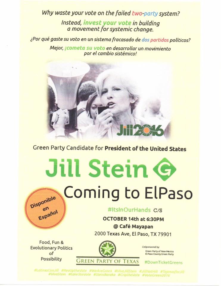 -Evening with Jill Stein event at Cafe Mayapan in El Paso, TX.